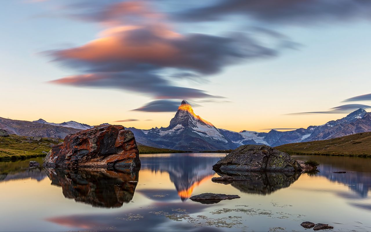 1280x800 гора, пейзаж, камни, озеро, природа обои 16:10
