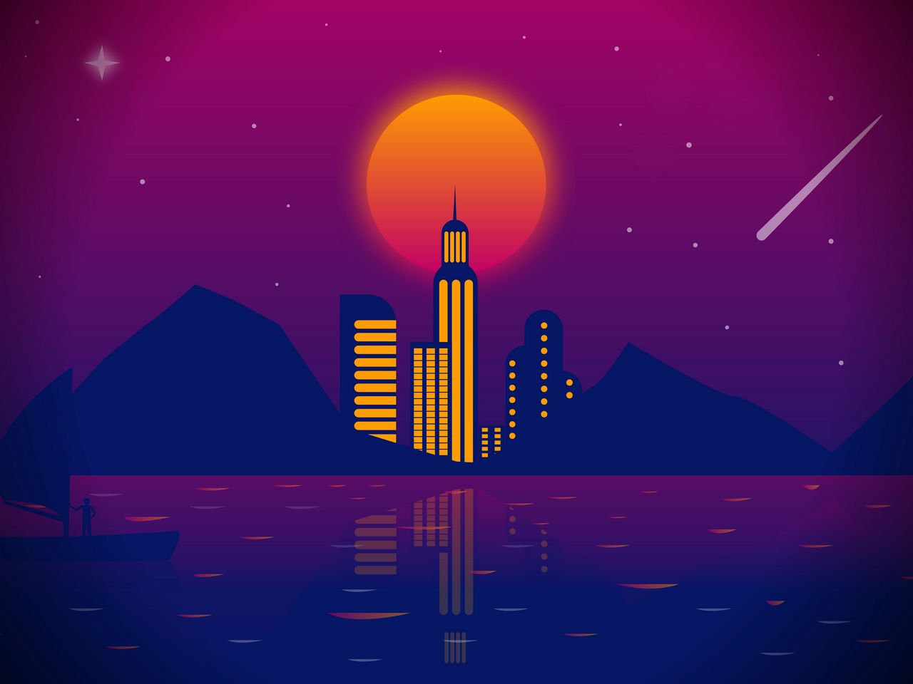 1280x960 город, вектор, арт, ночь, луна обои стандарт 4:3