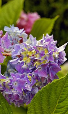 240x400 гортензия, листья, лепестки, цветы, растение, макро обои nokia asha 311, samsung galaxy 580, omnia, lg kp500