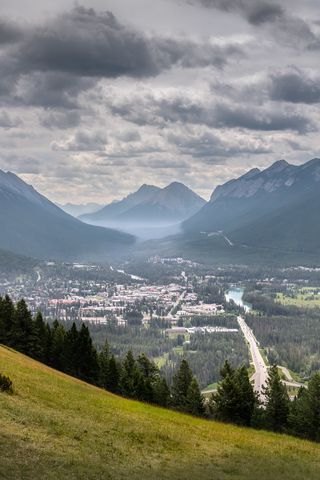 320x480 горы, туман, долина, поселок, вид, природа обои samsung galaxy ace gt-s5830, sony xperia e, miro, htc wildfire s, c, lg optimus