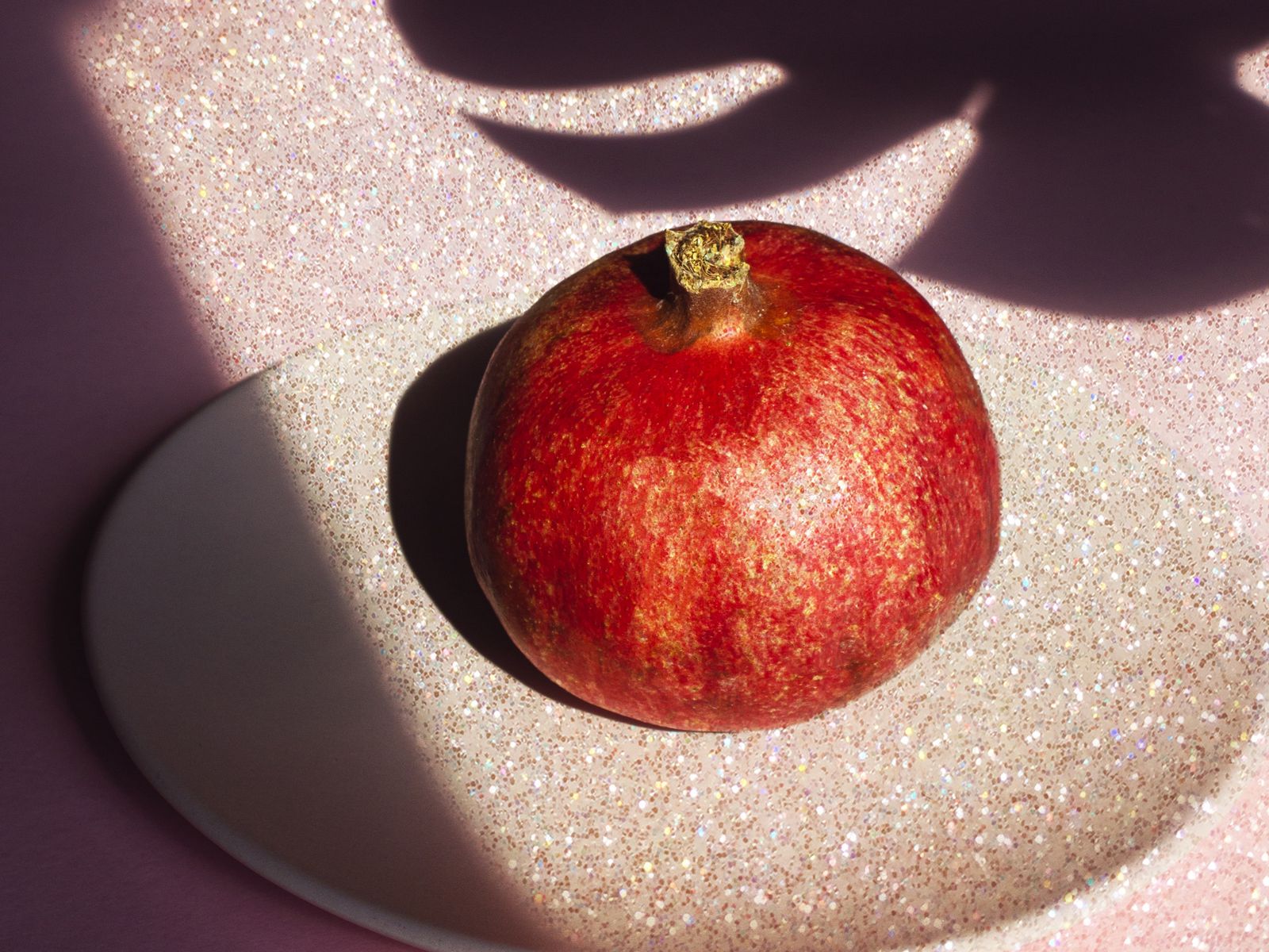 1600x1200 гранат, фрукт, тарелка, тень обои стандарт 4:3