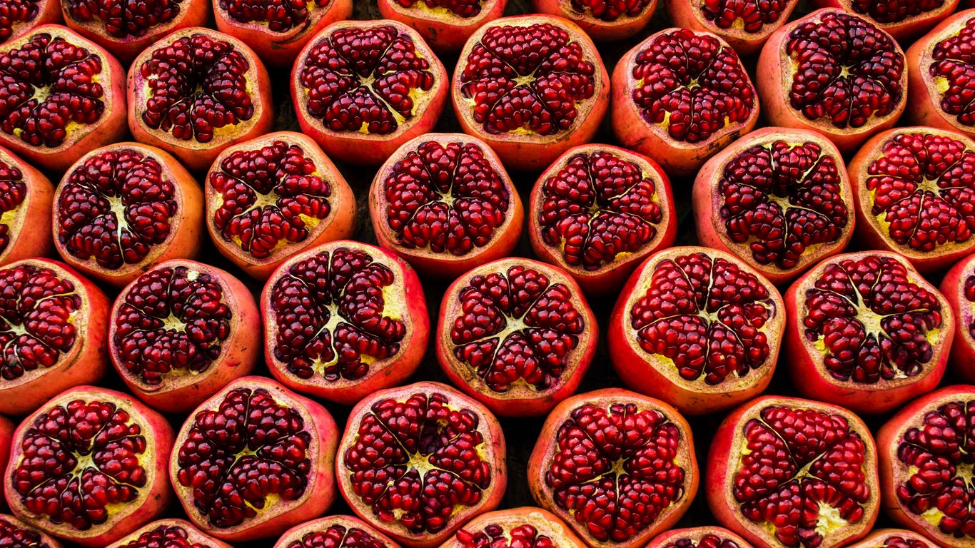 1366x768 гранат, фрукты, красный, спелый обои планшет, ноутбук
