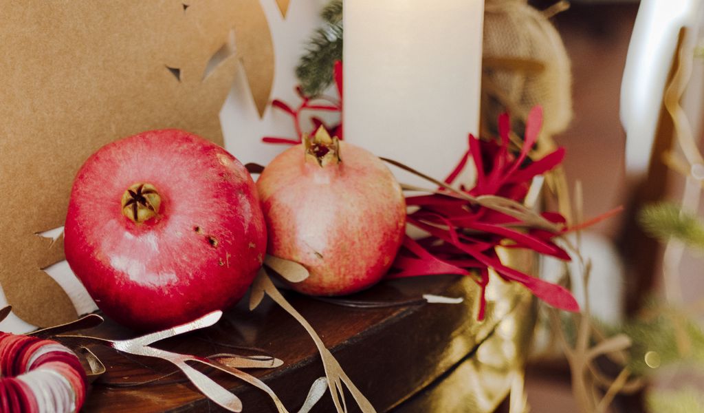1024x600 гранат, фрукты, свечи, гирлянда, рождество, эстетика обои нетбук, планшет