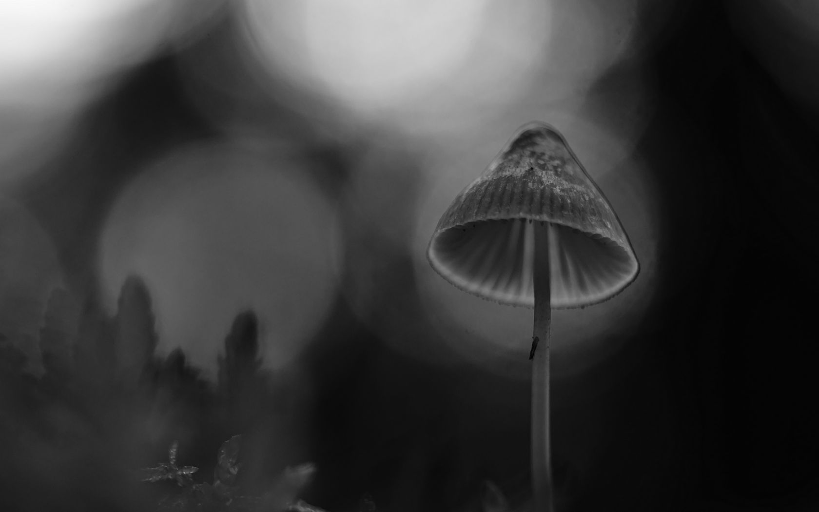 1680x1050 гриб, черно-белый, макро, размытие, мох обои 16:10