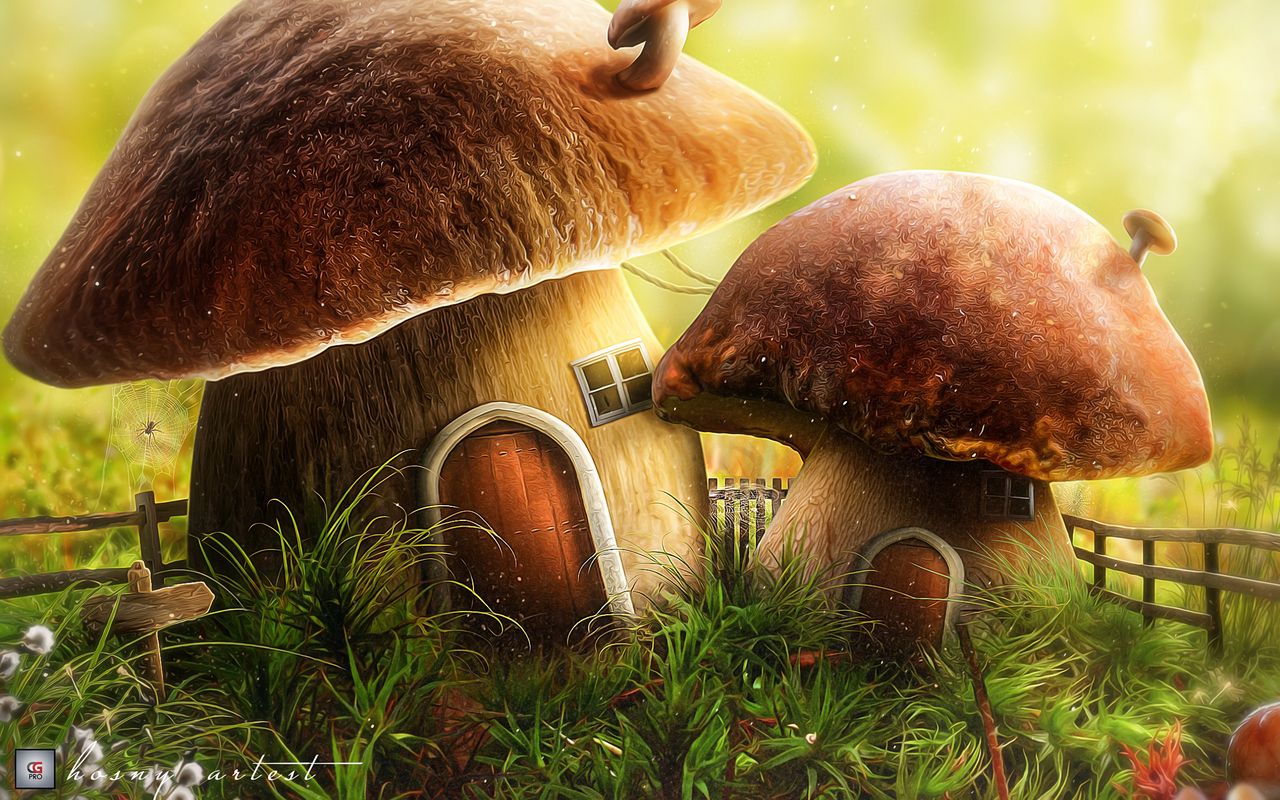 1280x800 гриб, дом, дверь, арт обои 16:10