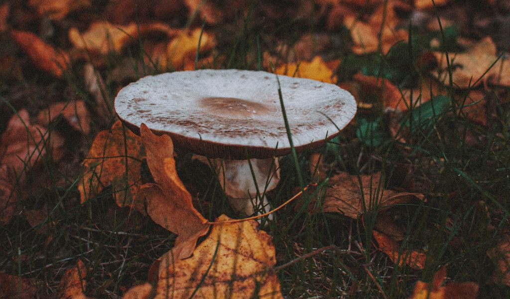 1024x600 гриб, листья, трава, осень обои нетбук, планшет