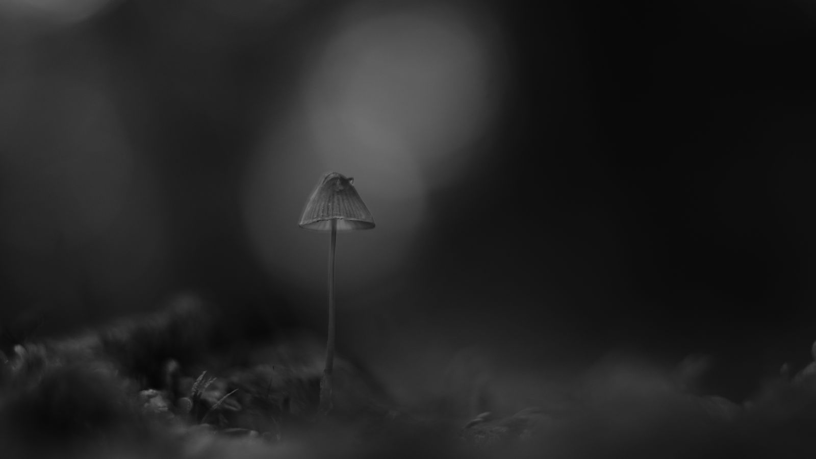 1600x900 гриб, макро, черно-белый, размытие обои 16:9