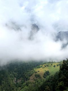 240x320 холм, горы, деревья, туман, облака, пейзаж обои мобильный телефон, смартфон