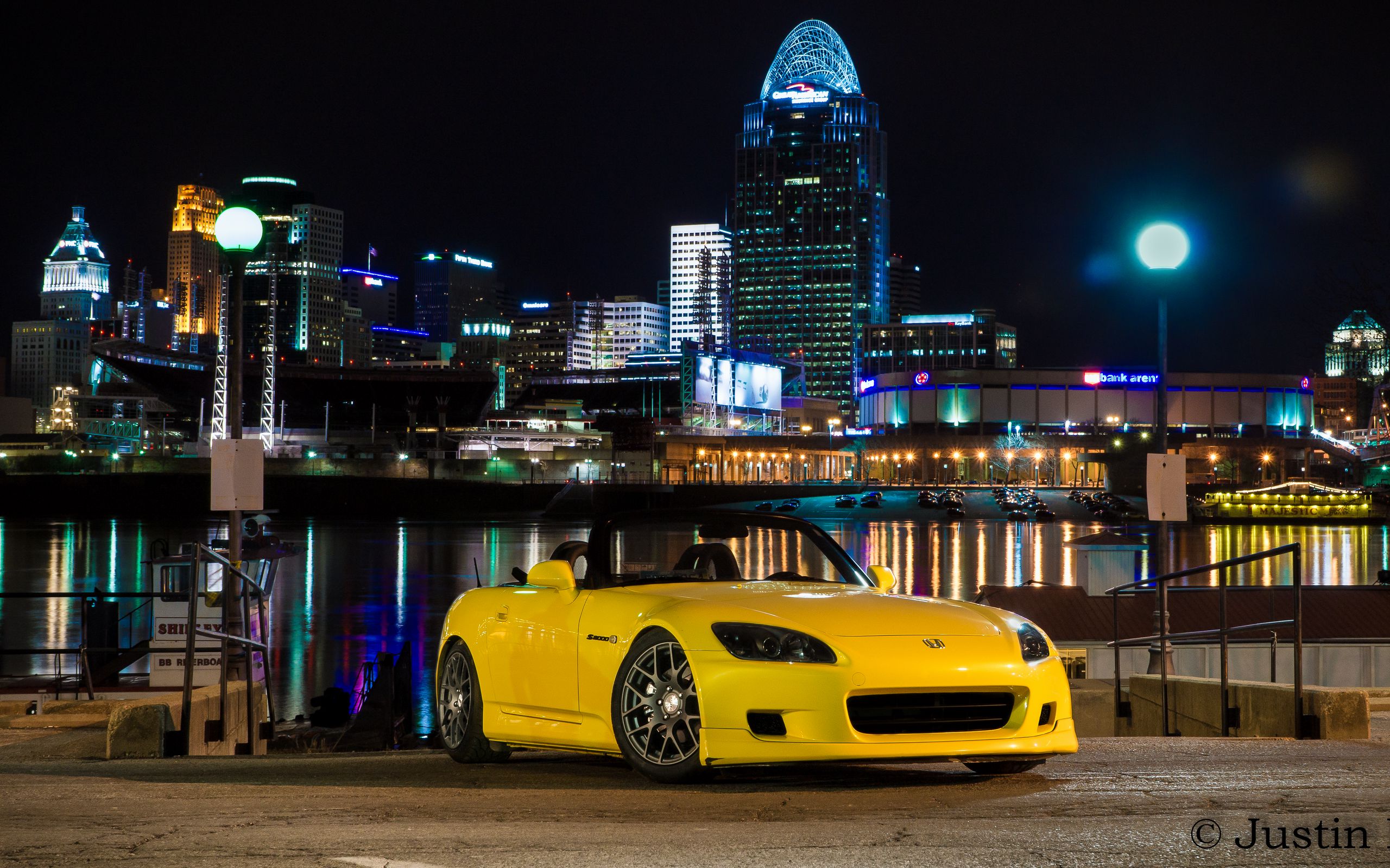 2560x1600 honda s2000, honda, автомобиль, желтый, город, огни, ночь обои 16:10