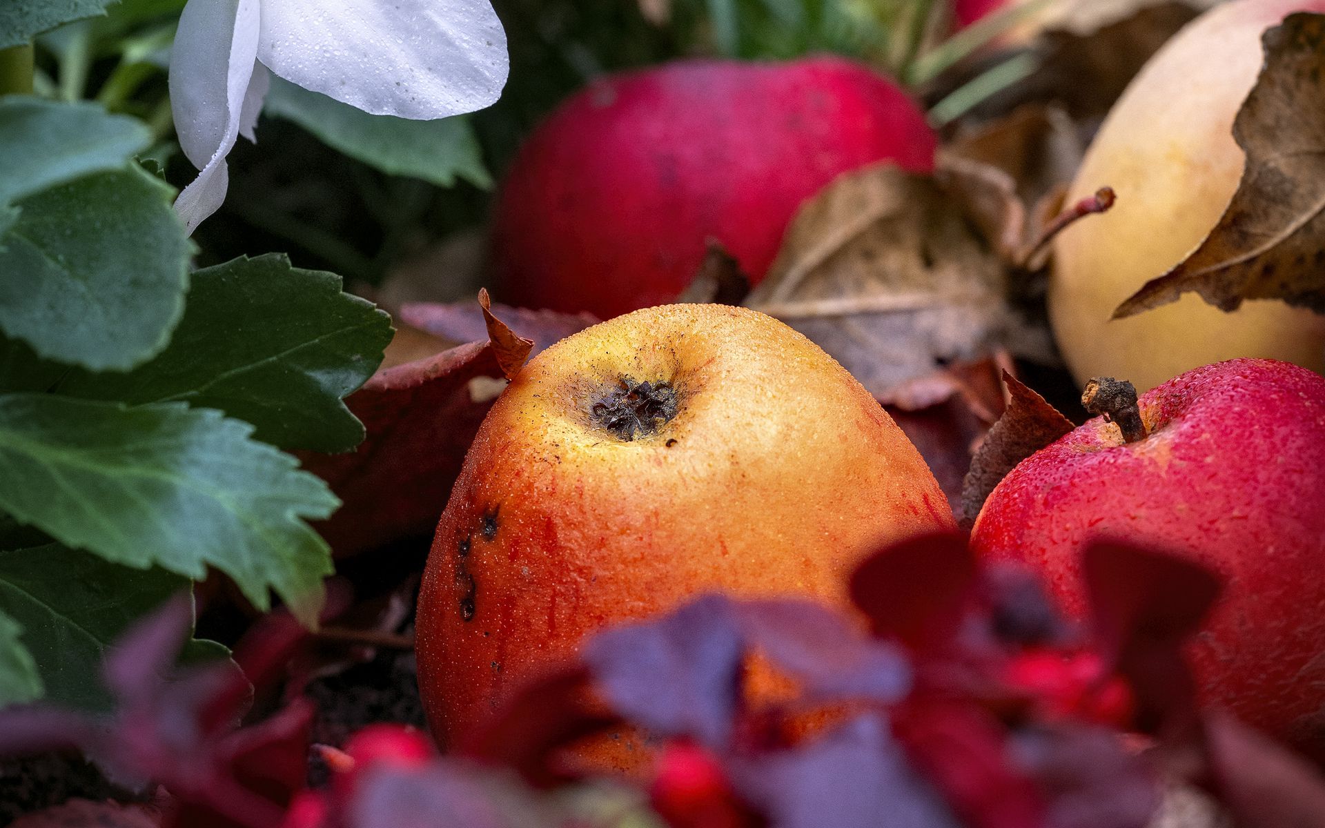 1920x1200 яблоки, фрукты, опавшая листва, осень обои 16:10