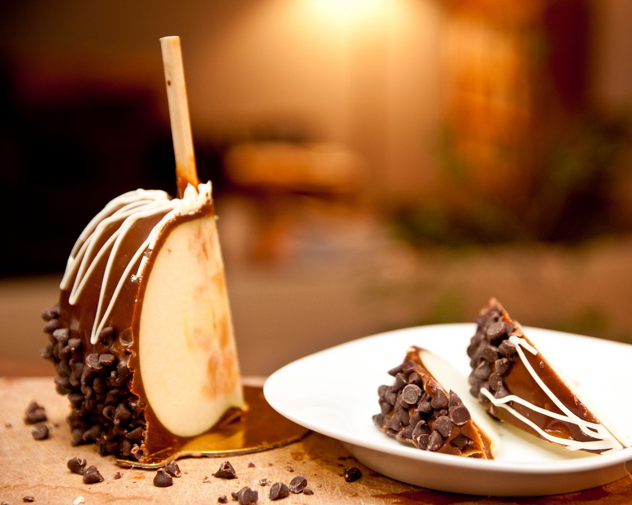 1280x1024 яблоко, долька, карамель, шоколад, десерт обои стандарт 5:4