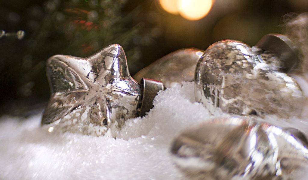 1024x600 игрушки, блики, боке, снег, новый год, рождество обои нетбук, планшет