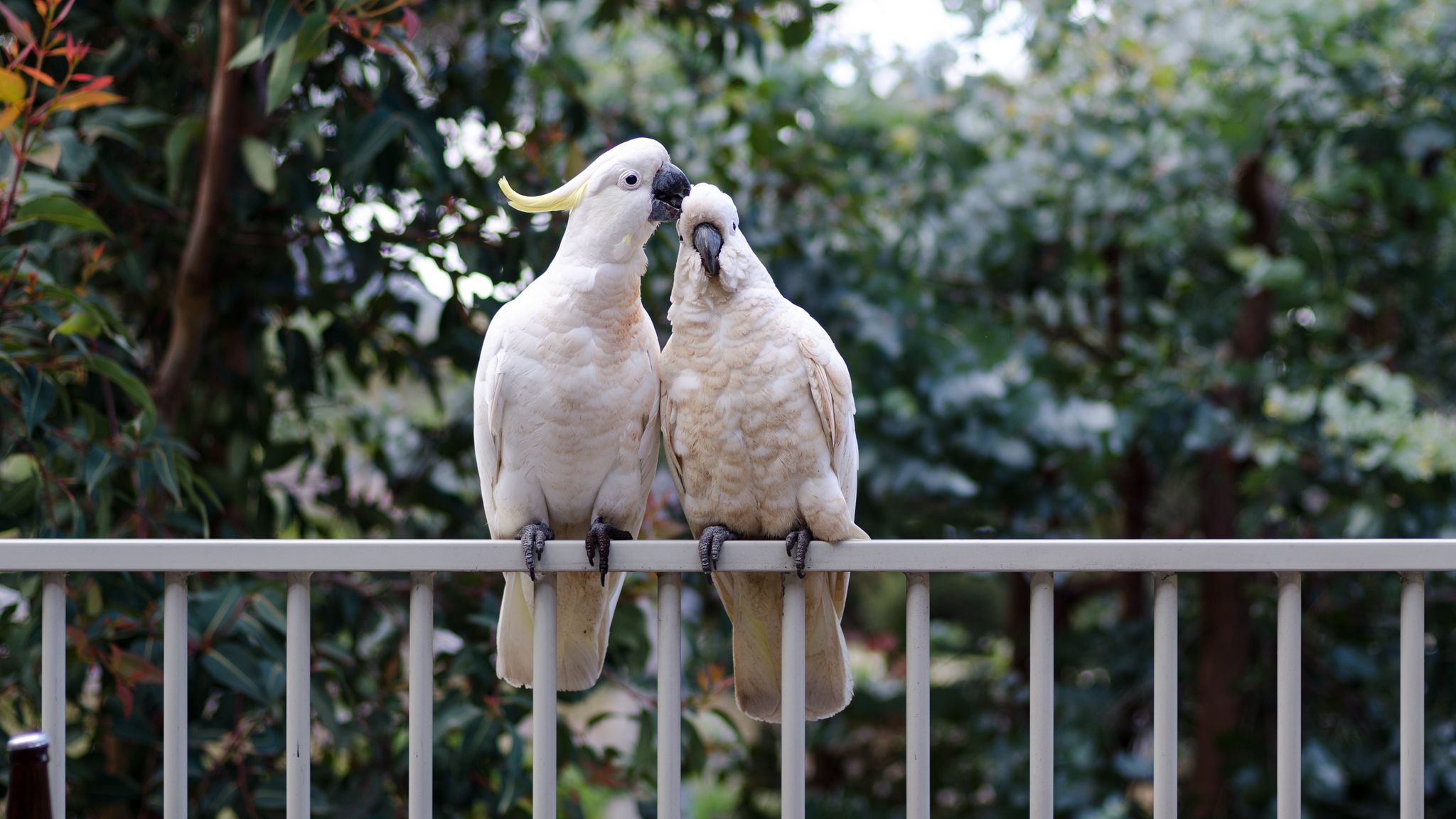 2048x1152 какаду, попугаи, птицы, белый, пара обои ультраширокий монитор