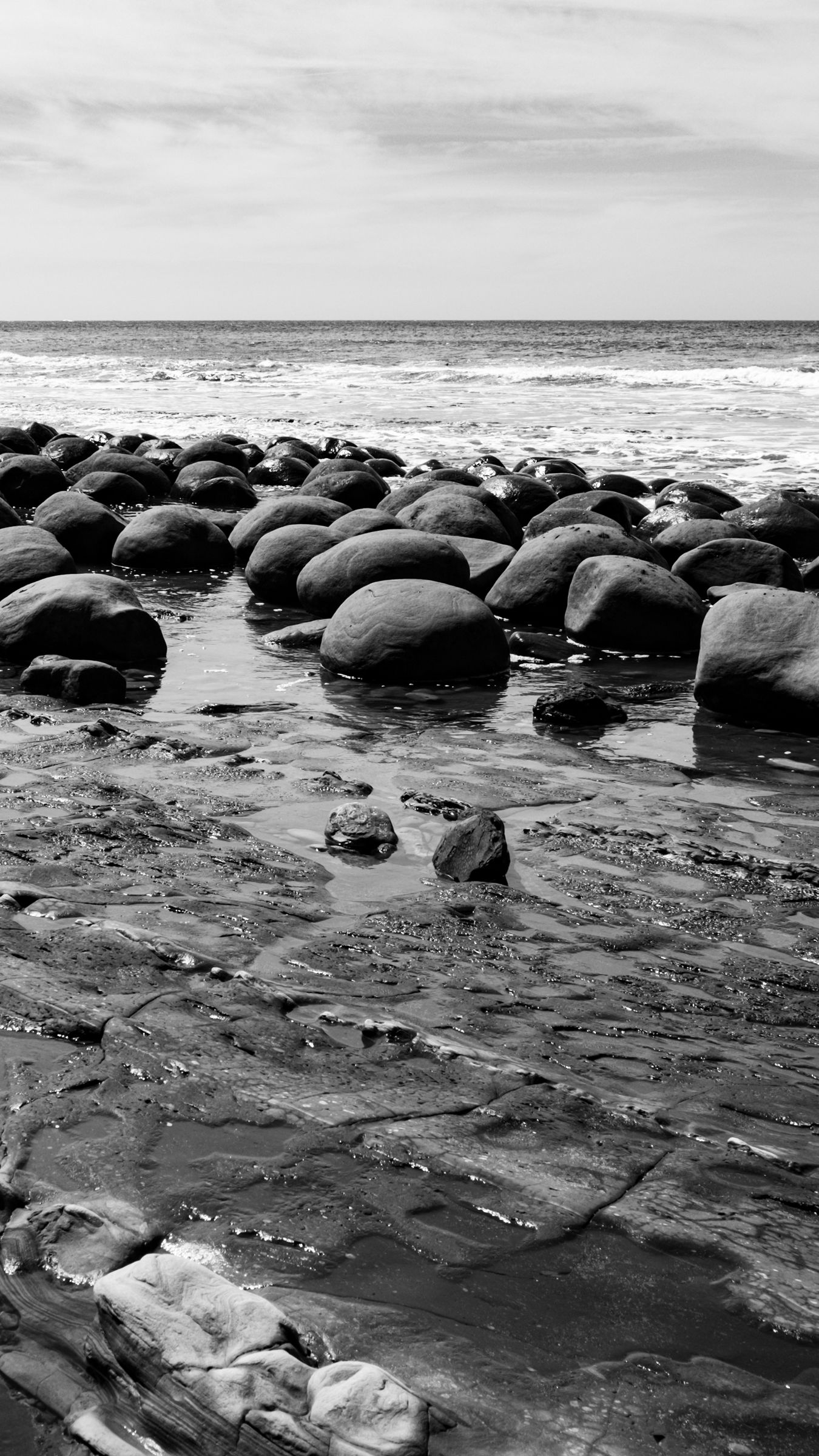 1350x2400 камни, море, вода, пляж, горизонт, чб обои iphone 8+/7+/6s+/6+ for parallax