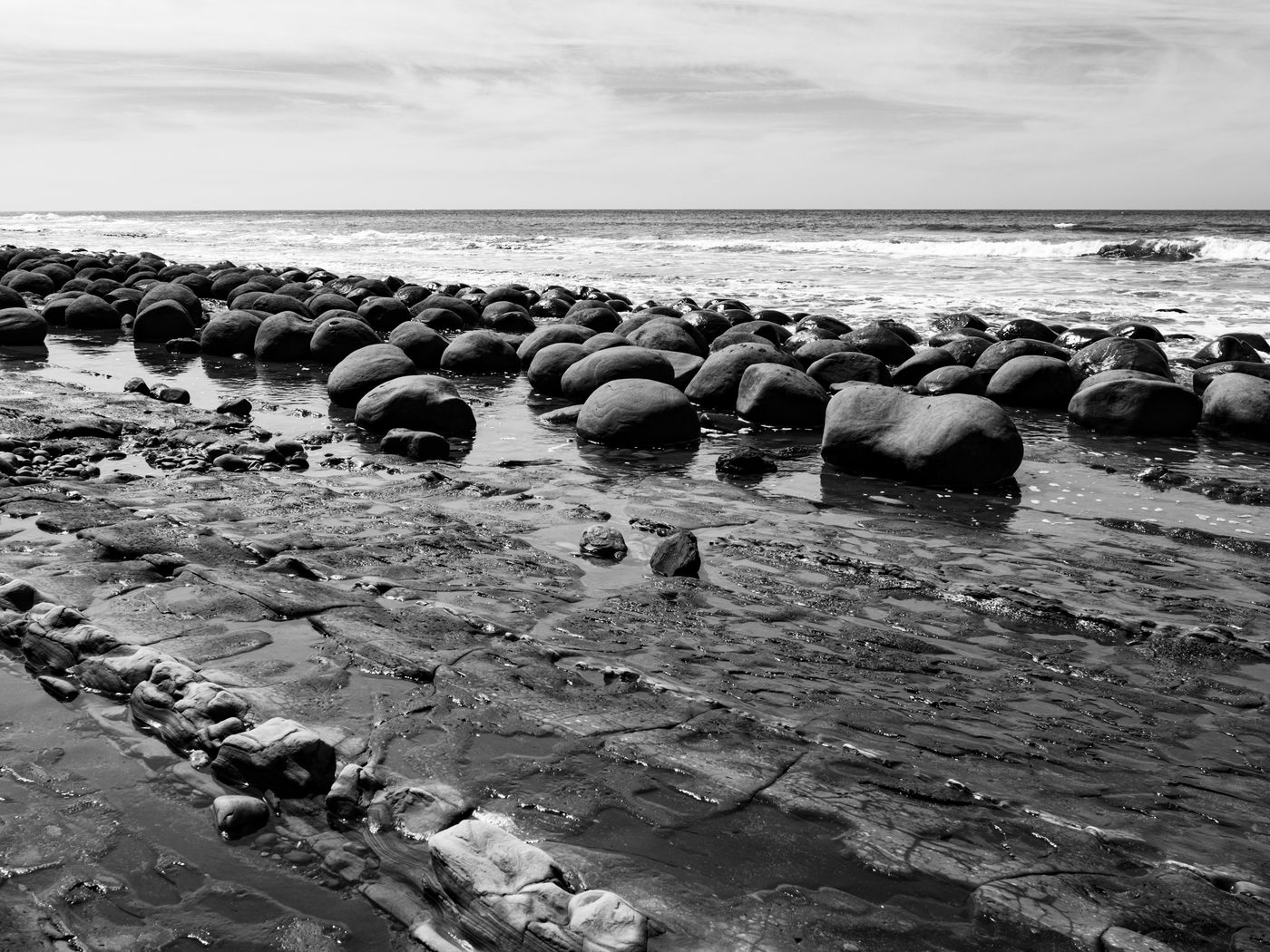 1400x1050 камни, море, вода, пляж, горизонт, чб обои стандарт 4:3