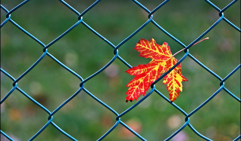 1024x600 кленовый лист, лист, клен, проволока, размытие, минимализм обои нетбук, планшет
