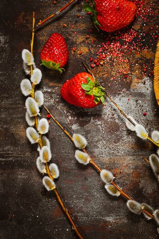 320x480 клубника, ягода, верба, ветка, поверхность обои samsung galaxy ace gt-s5830, sony xperia e, miro, htc wildfire s, c, lg optimus