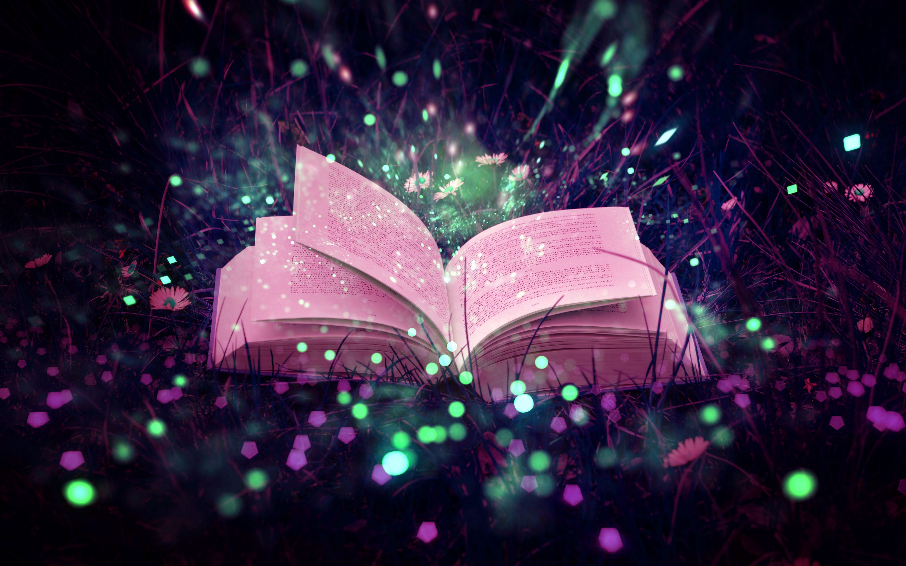 3840x2400 книга, блики, блестки, трава, волшебство обои 4k ultra hd 16:10