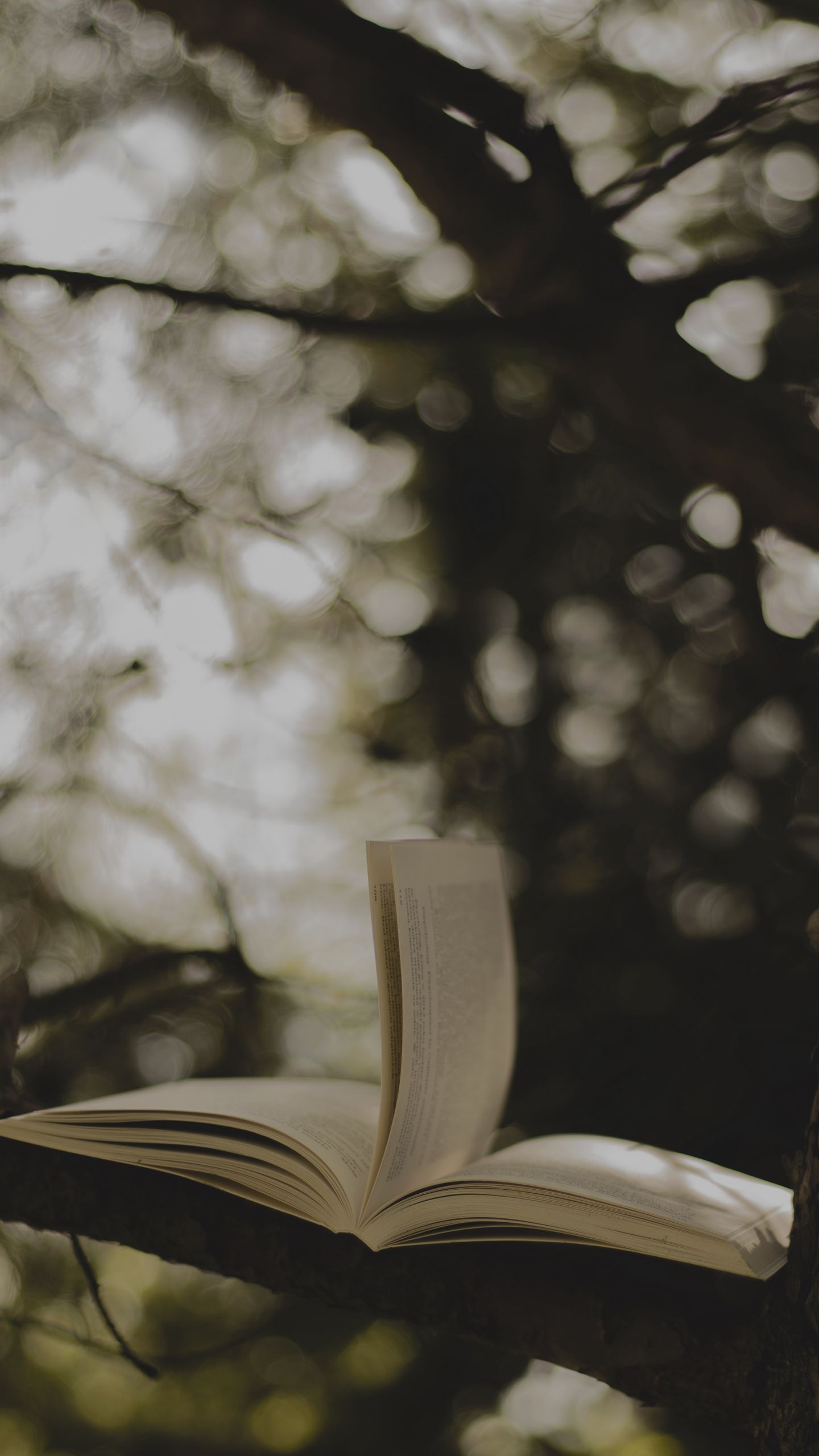 1440x2560 книга, дерево, ветка, размытие обои qhd samsung galaxy s6, s7, edge, note, lg g4