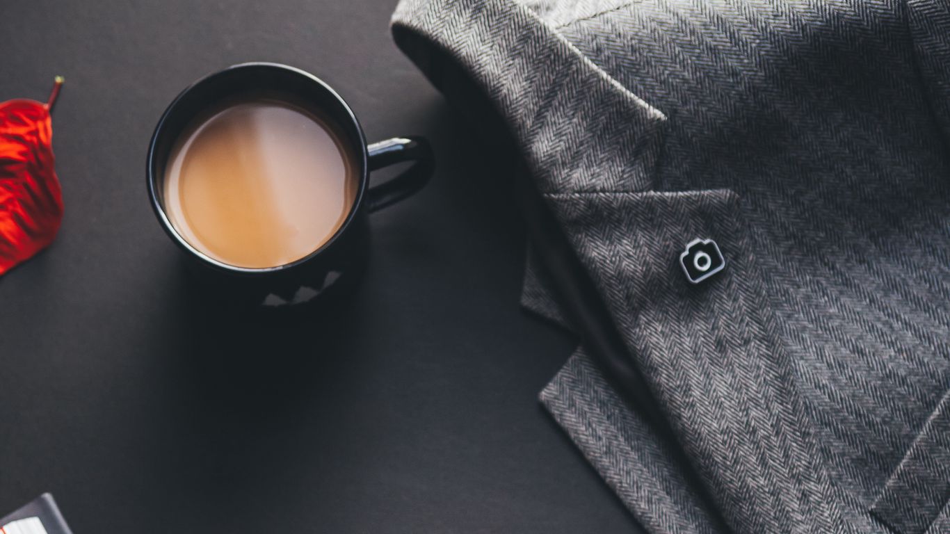 1366x768 кофе, фотоаппарат, пиджак, черный фон, ретро обои планшет, ноутбук