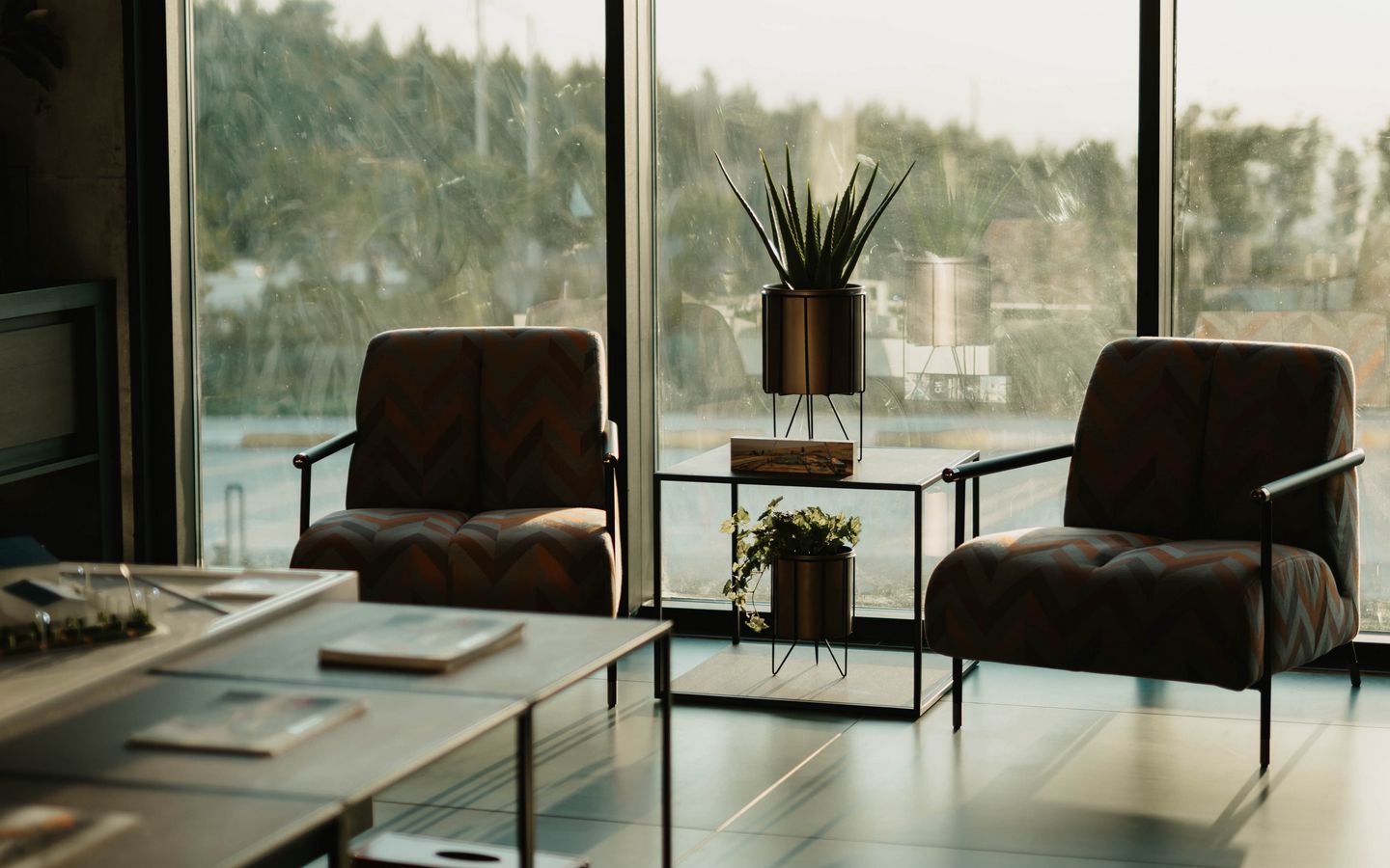 1440x900 комната, кресла, комнатное растение обои 16:10