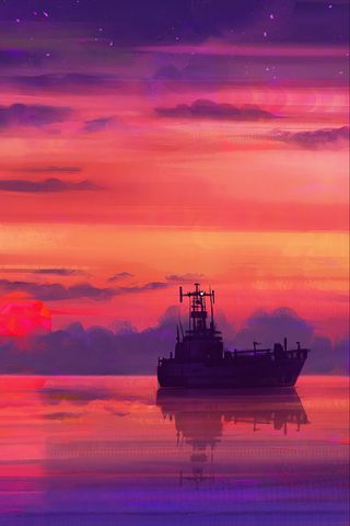 320x480 корабль, арт, море, закат, горизонт, небо, облака обои samsung galaxy ace gt-s5830, sony xperia e, miro, htc wildfire s, c, lg optimus