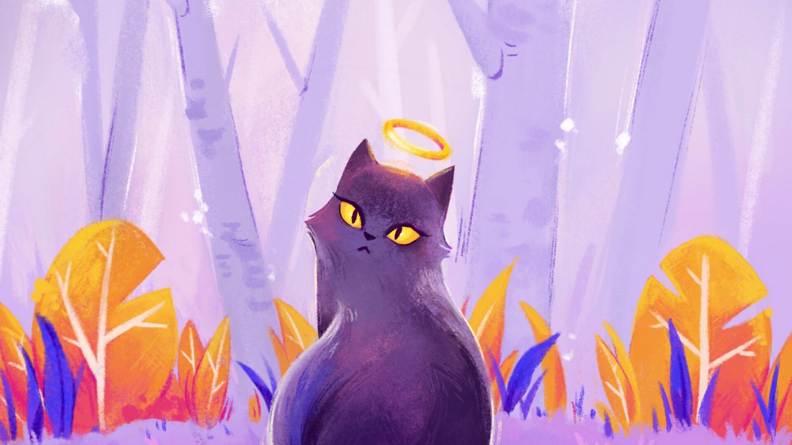 1600x900 кошка, нимб, арт, фиолетовый обои 16:9