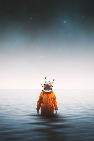 320x480 космонавт, скафандр, бабочки, сюрреализм, море, горизонт обои samsung galaxy ace gt-s5830, sony xperia e, miro, htc wildfire s, c, lg optimus