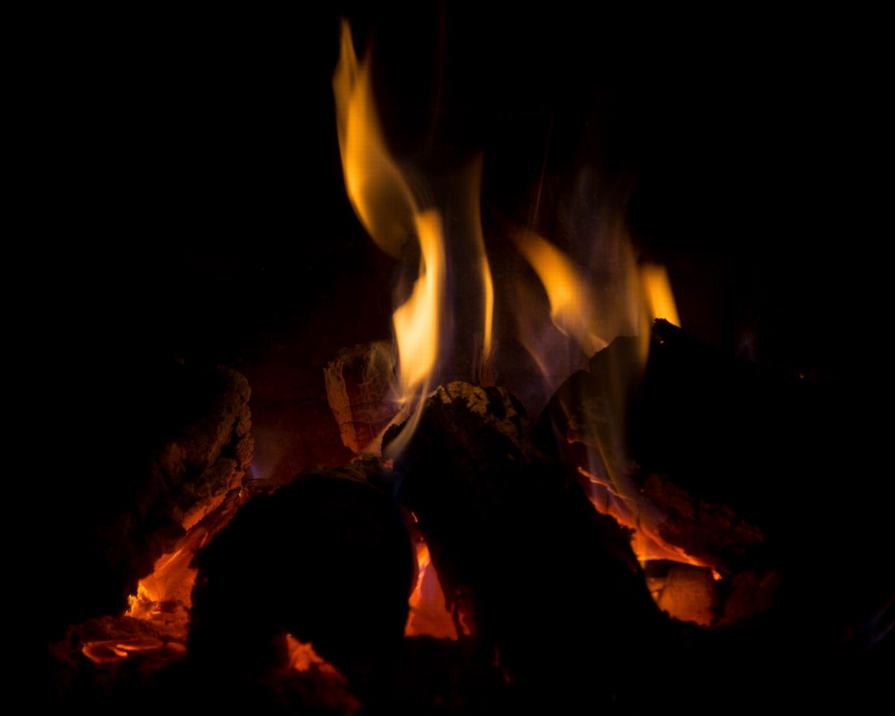 1280x1024 костер, угли, пламя, огонь, темный обои стандарт 5:4