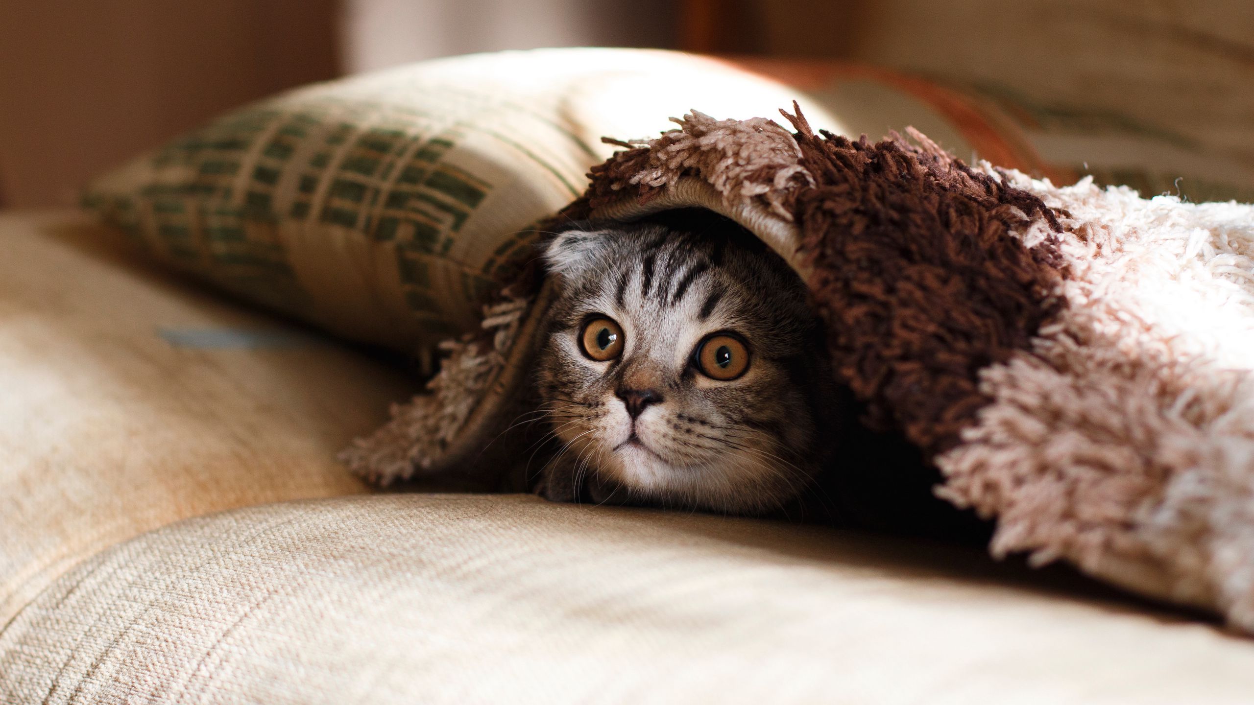 2560x1440 кот, морда, удивление, выглядывать обои 16:9