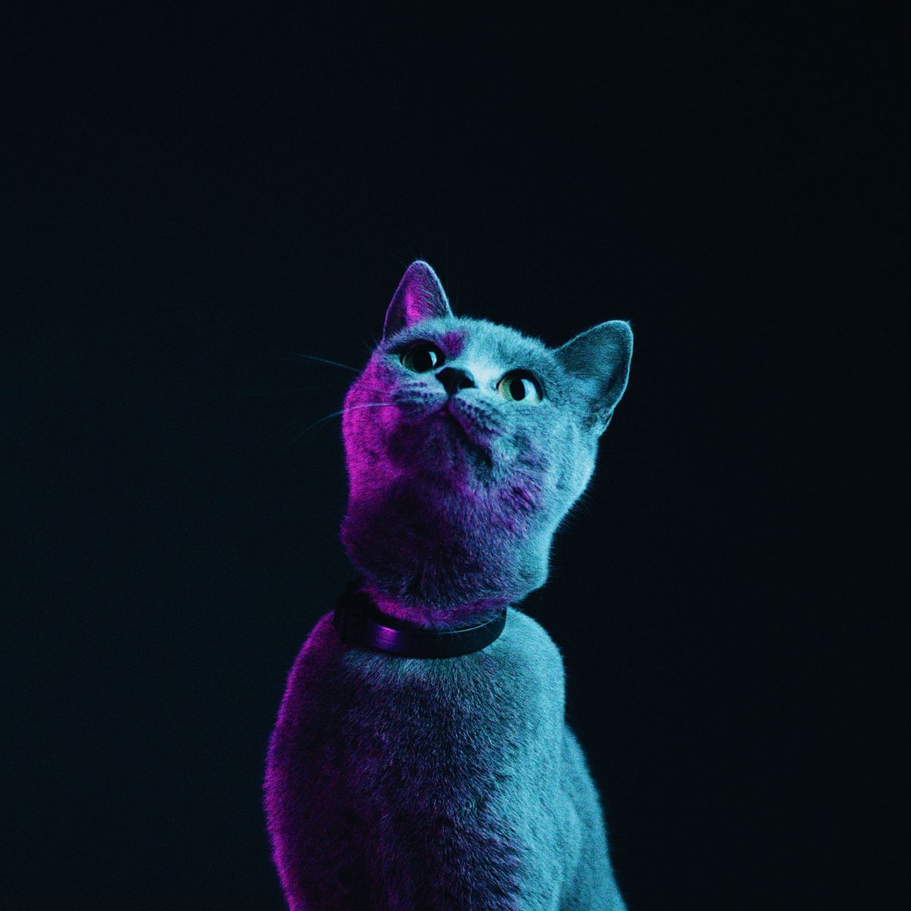 1280x1280 кот, серый, питомец, неон обои ipad, ipad 2, ipad mini for parallax