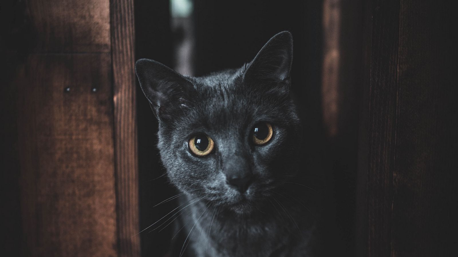 1600x900 кот, серый, взгляд, питомец, темный обои 16:9