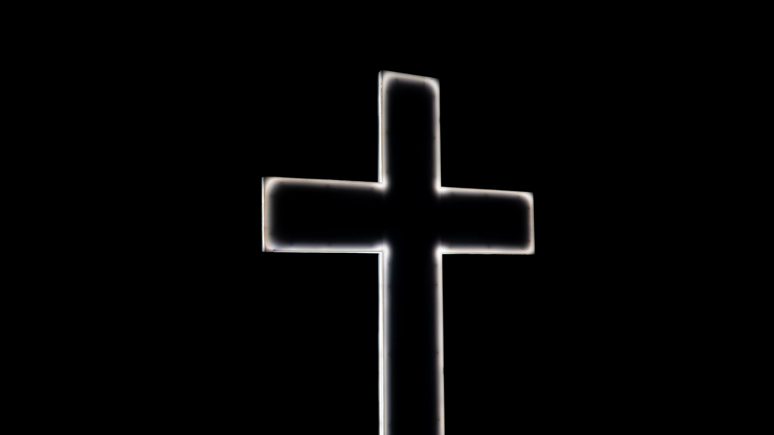 2560x1440 крест, религия, бог, неон, черно-белый, черный обои 16:9