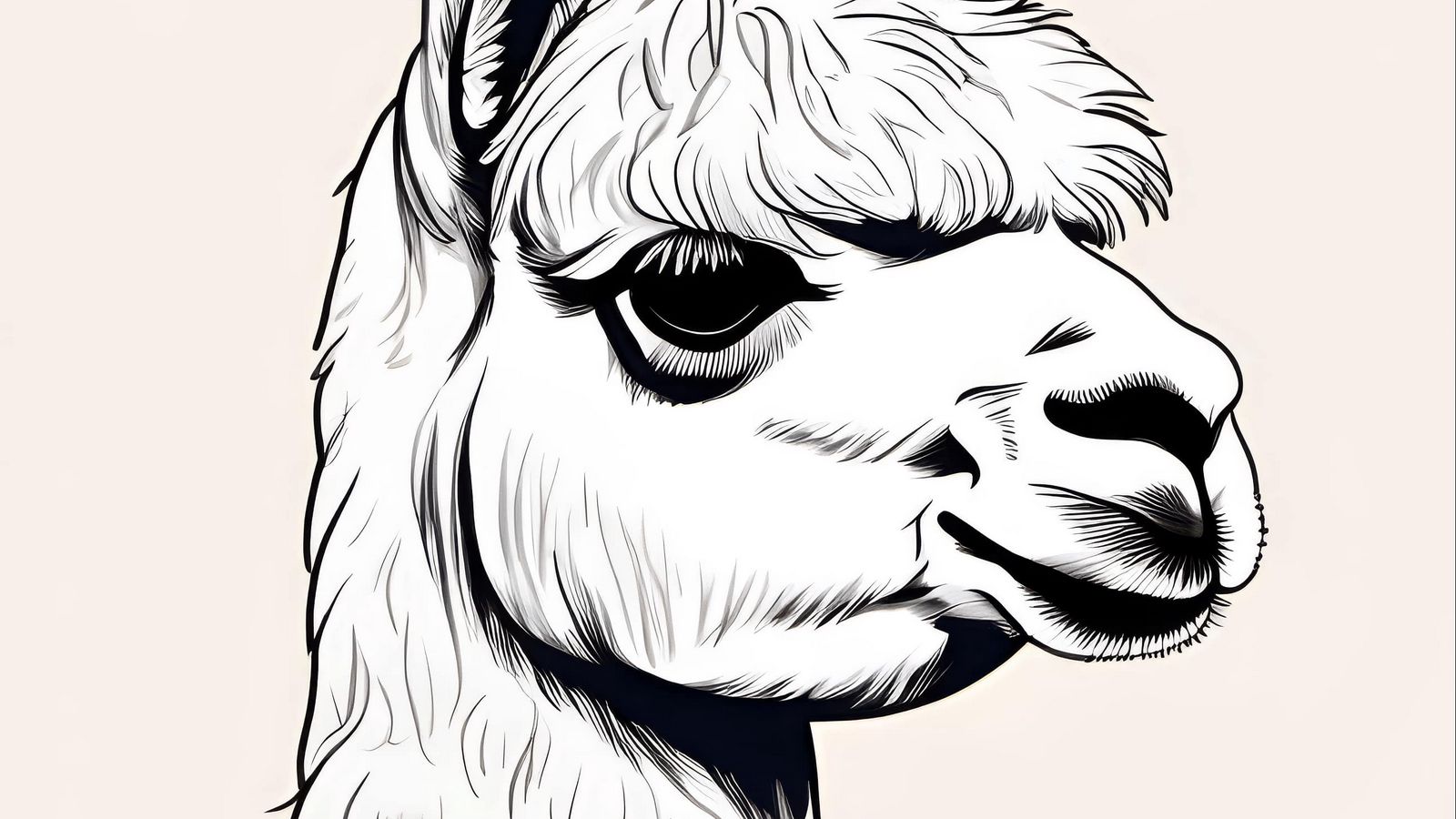 1600x900 лама, голова, арт, белый обои 16:9