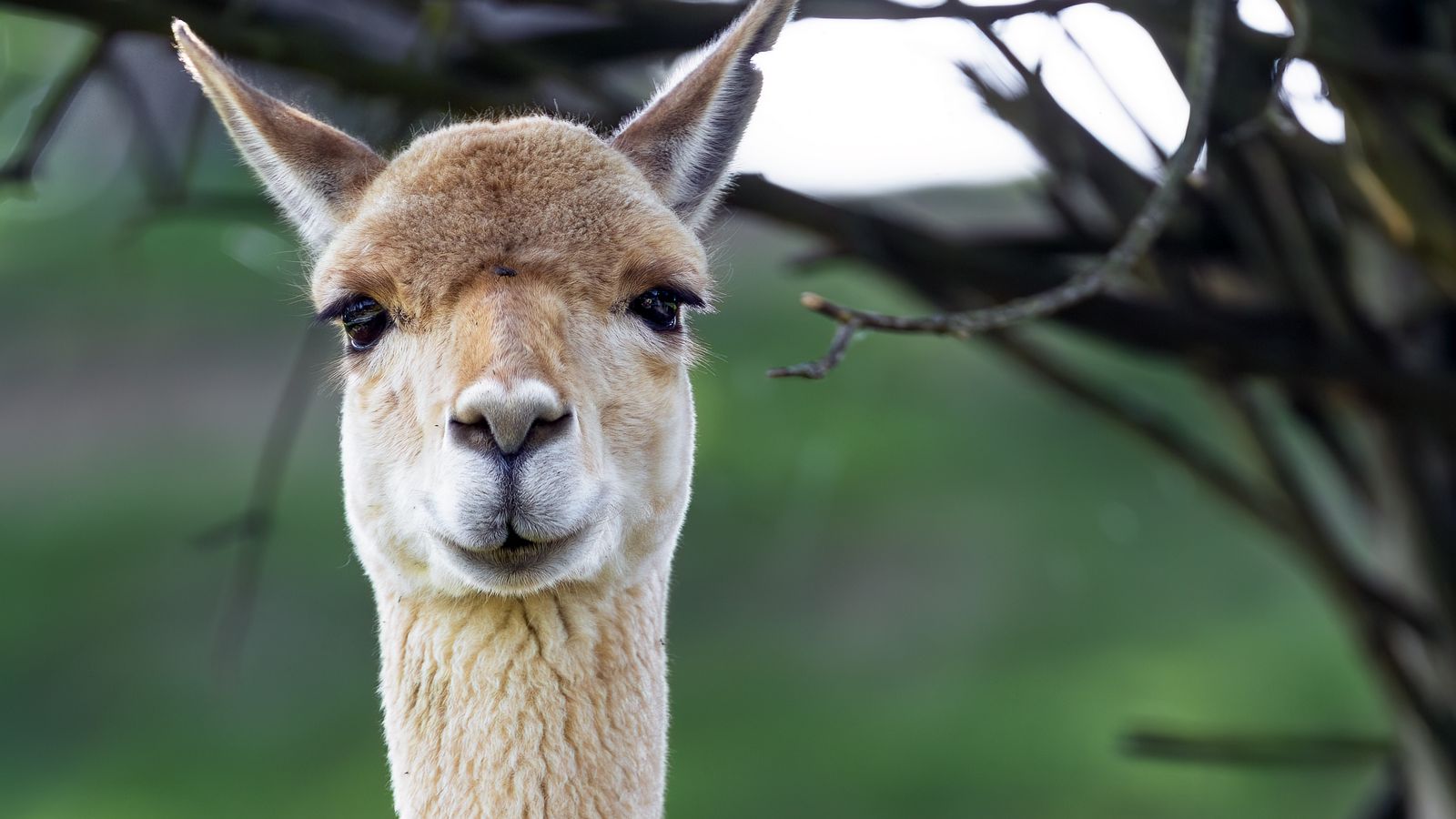 1600x900 лама, милый, взгляд, животное, мех обои 16:9