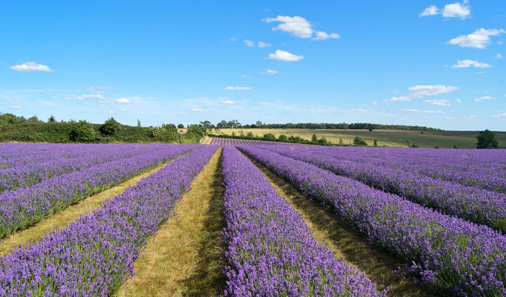 1024x600 лаванда, поле, цветы, кусты, облака, пейзаж обои нетбук, планшет