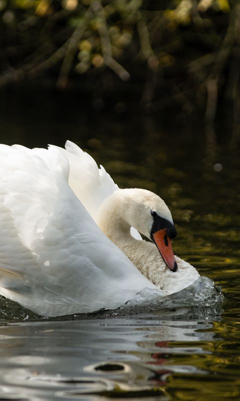 480x800 лебедь, клюв, крылья, птица, вода обои nokia x, x2, xl, 520, 620, 820, samsung galaxy star, ace, asus zenfone 4