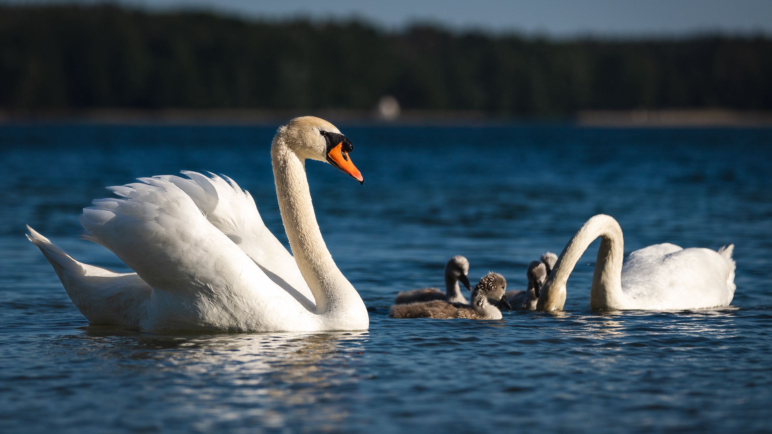 2560x1440 лебедь, клюв, птица, река обои 16:9