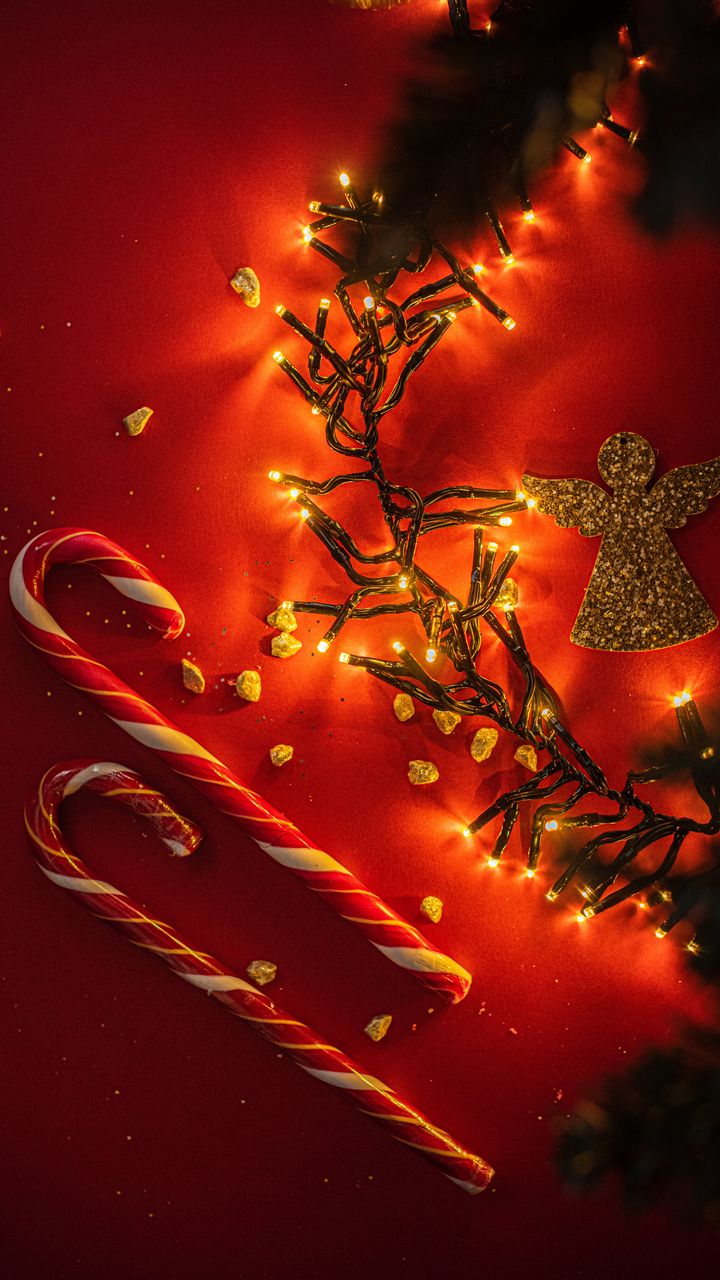720x1280 леденцы, гирлянда, ангел, фигурка, золото, праздник обои samsung galaxy mini s3, s5, neo, alpha, sony xperia compact z1, z2, z3, asus zenfone