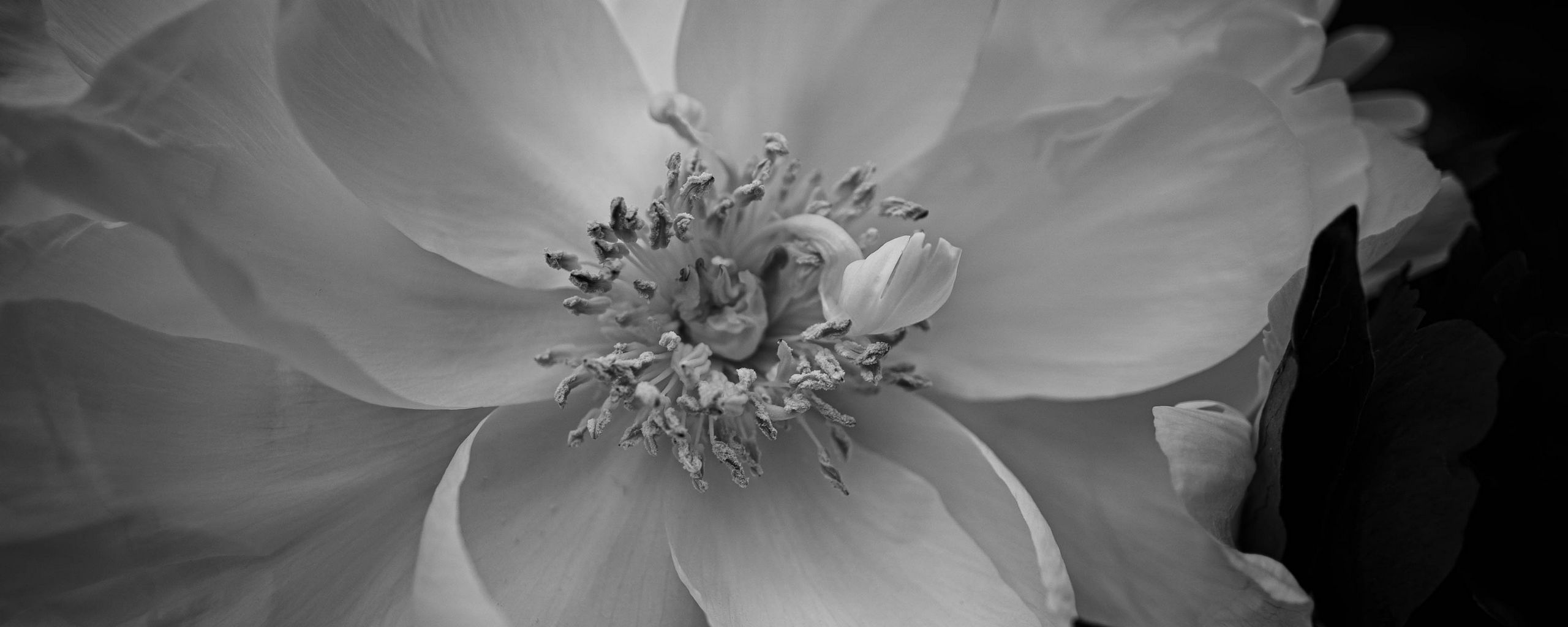 2560x1024 лепестки, пион, цветок, макро, чб обои ультраширокий монитор
