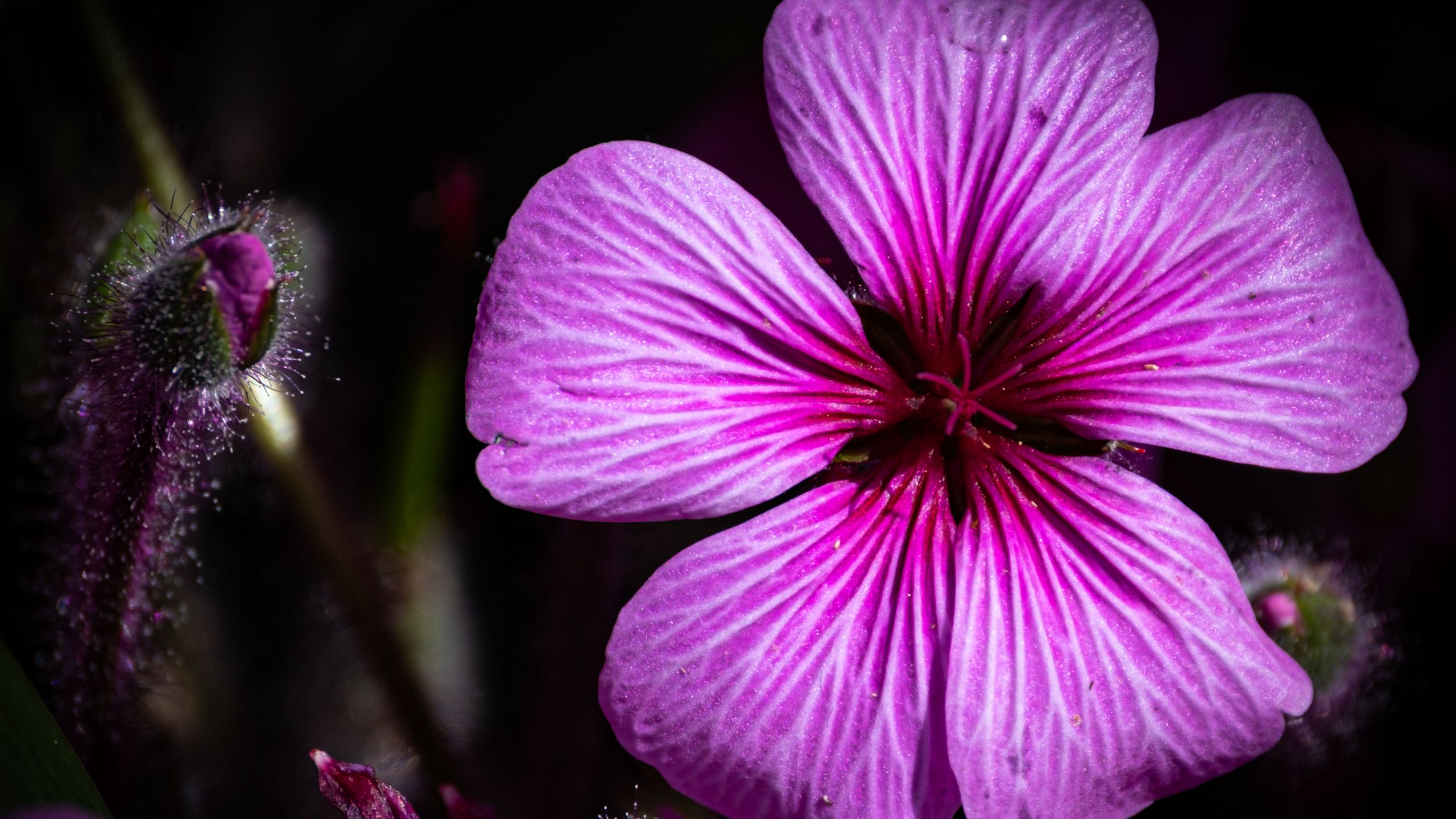 2560x1440 лепестки, цветы, бутоны, фиолетовый, макро обои 16:9