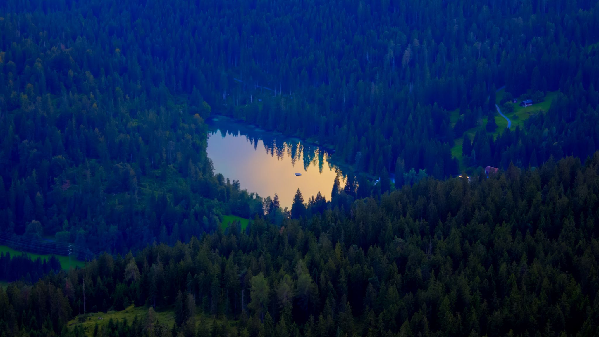 2048x1152 лес, озеро, природа, вид сверху обои ультраширокий монитор