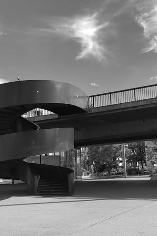 320x480 лестница, мост, улица, здания, чб обои samsung galaxy ace gt-s5830, sony xperia e, miro, htc wildfire s, c, lg optimus