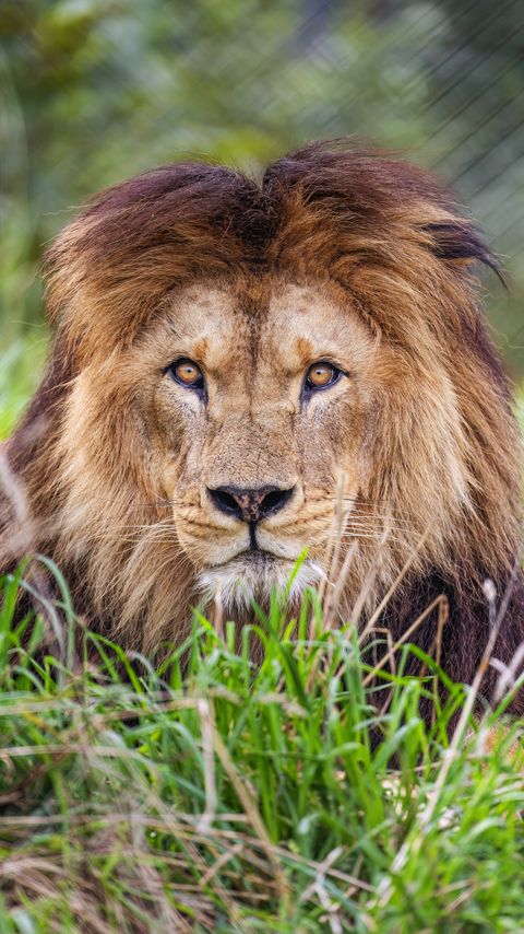480x854 лев, хищник, трава, взгляд, животное обои nokia lumia 630, sony ericsson xperia