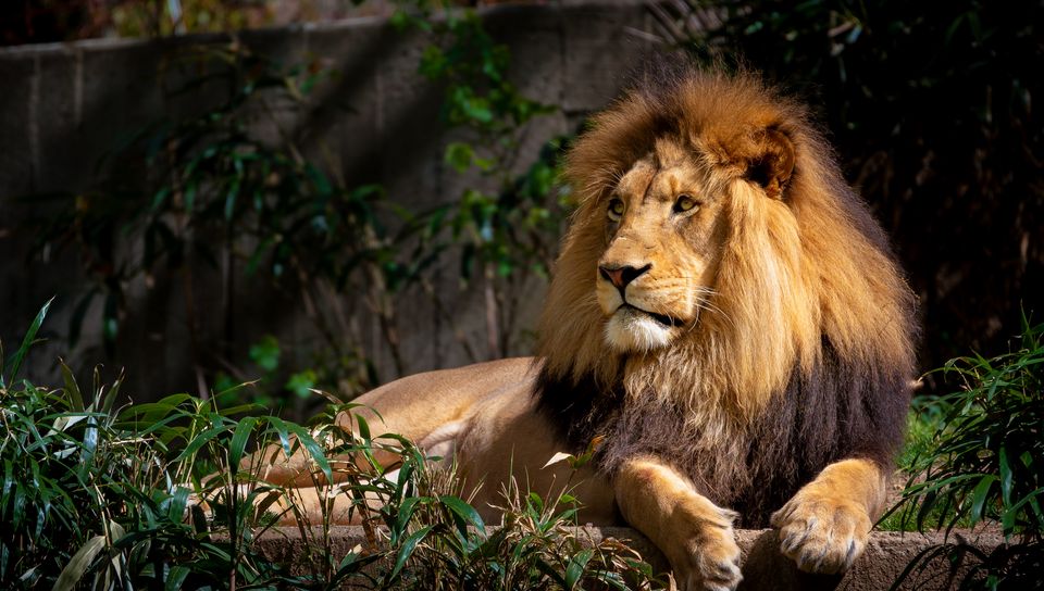960x544 лев, хищник, животное, дикая природа, листья обои playstation ps vita