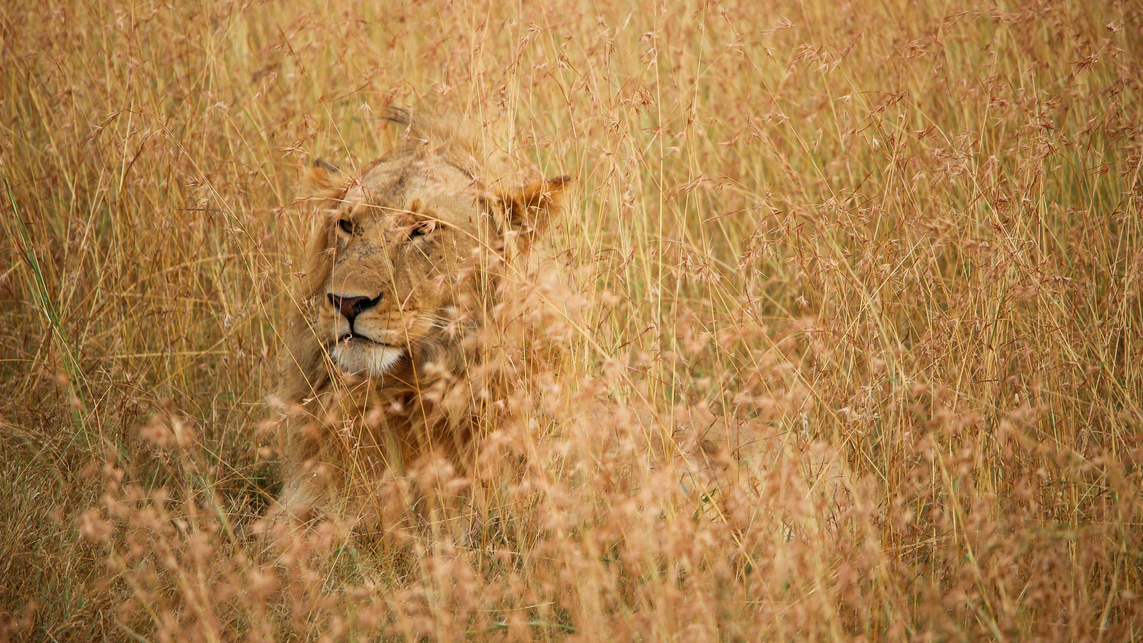 3840x2160 лев, прятаться, хищник, царь зверей обои 4k uhd 16:9