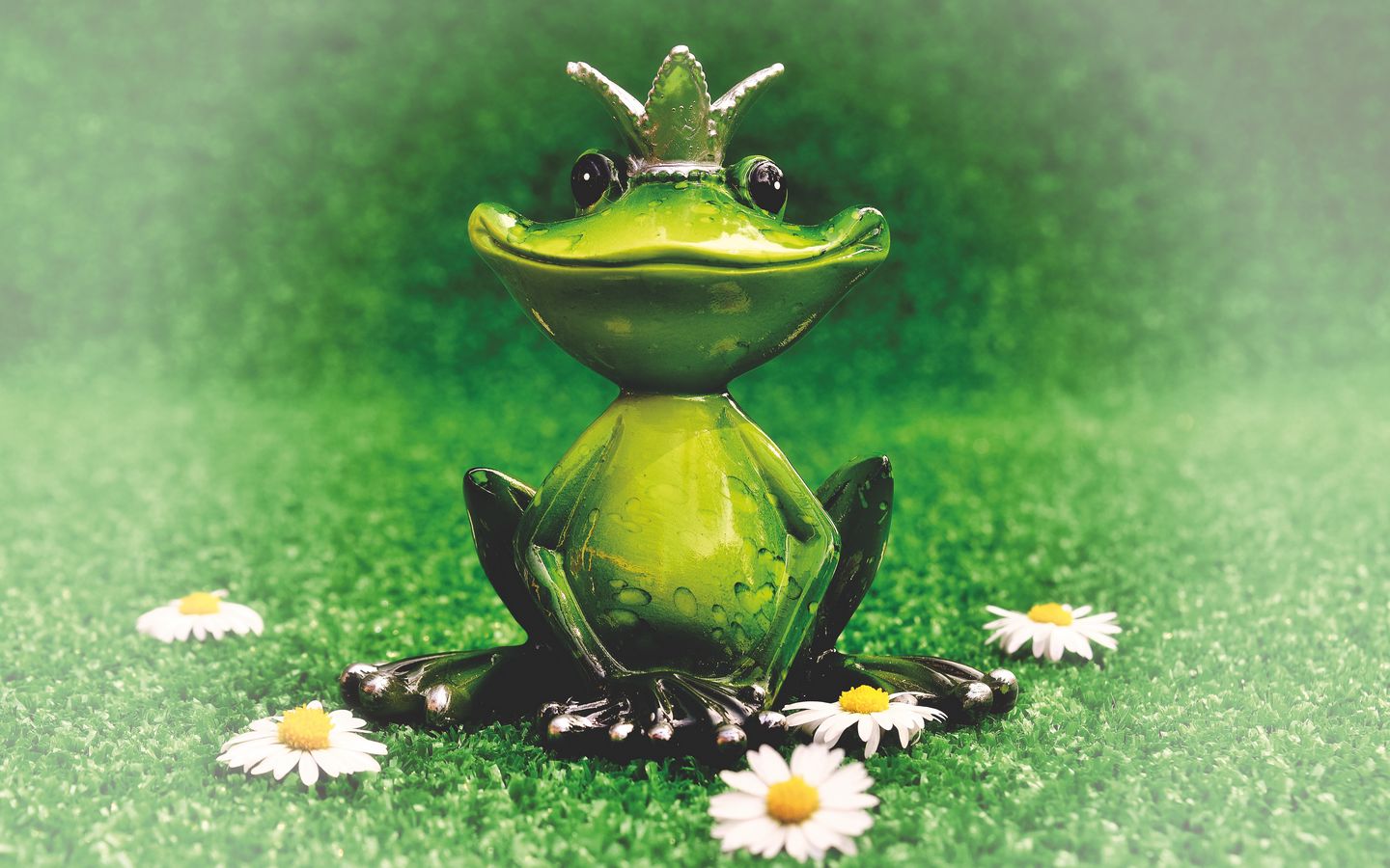 1440x900 лягушка, статуэтка, царевна, корона, цветы обои 16:10