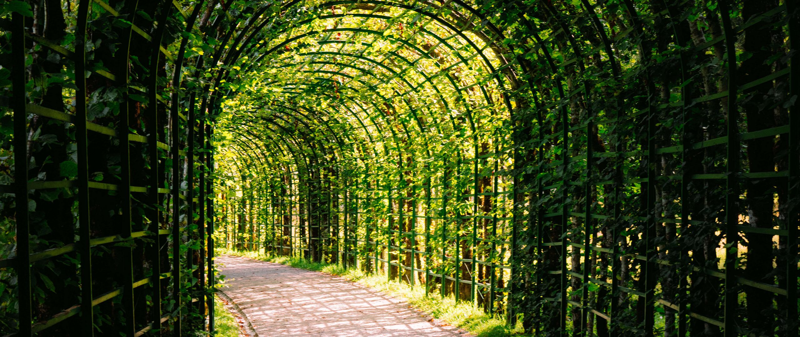 2560x1080 листья, арка, сад, растения, природа обои два монитора 1080p