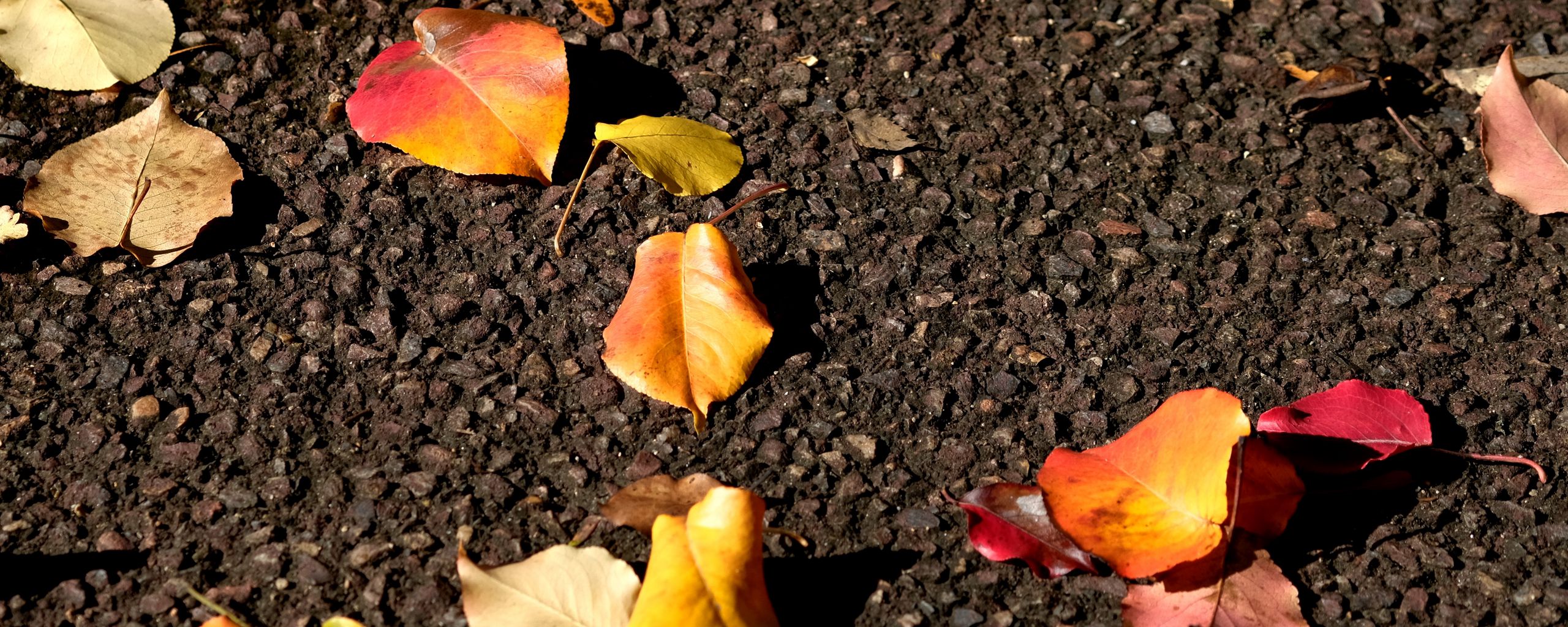 2560x1024 листья, асфальт, осень, желтый обои ультраширокий монитор