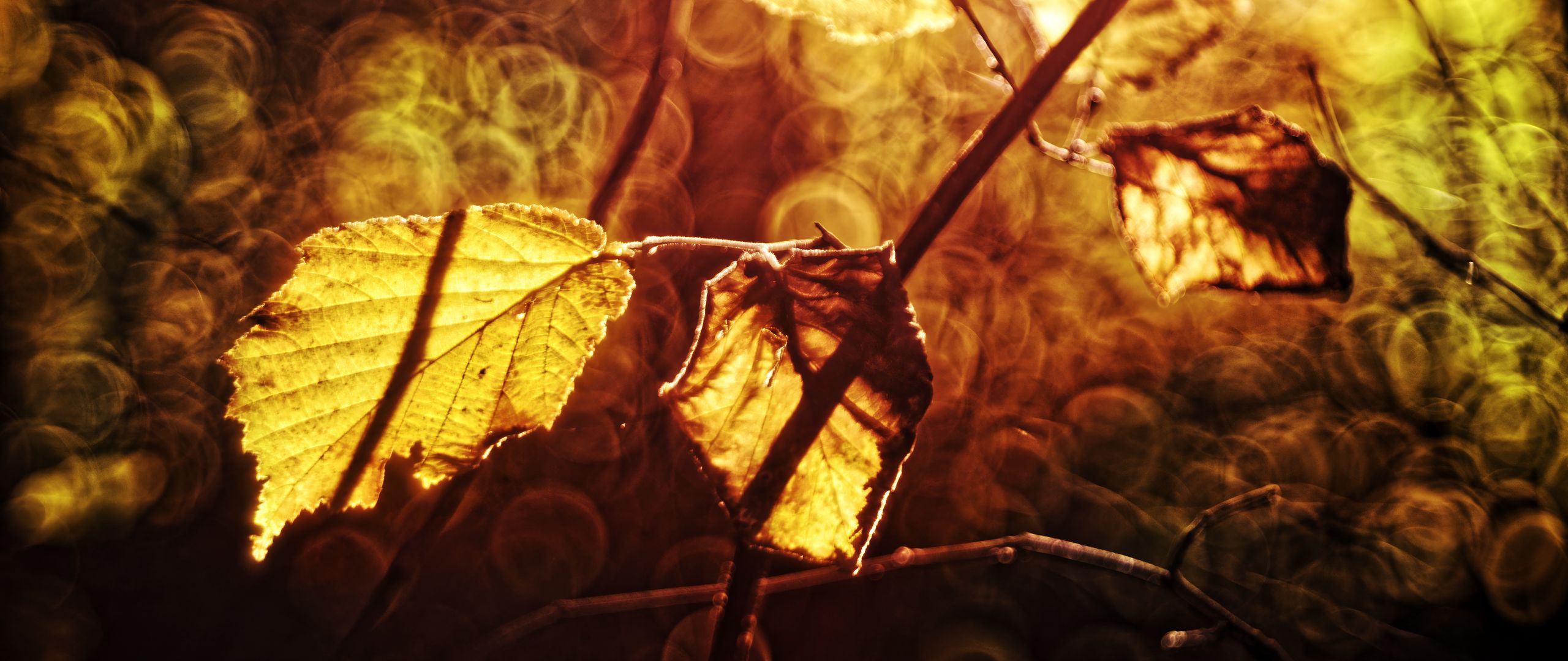 2560x1080 листья, осень, ветка, боке обои два монитора 1080p